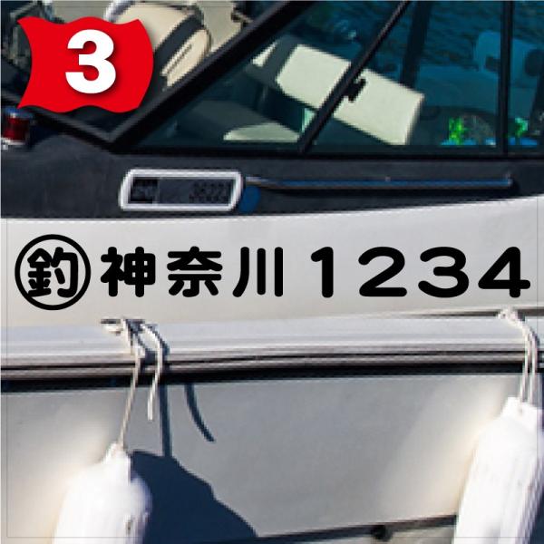 ■遊漁船登録番号の適法サイズ縦幅15cmです。横幅は「都道府県名」「登録番号」の桁数で変わります。