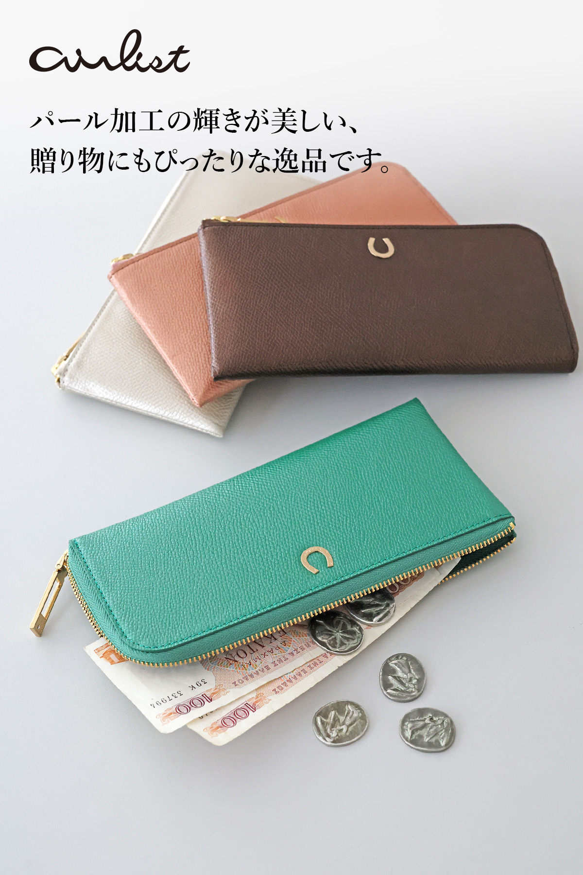 /本革/L字ファスナー/L字/薄マチ/ワンアクション/パール加工