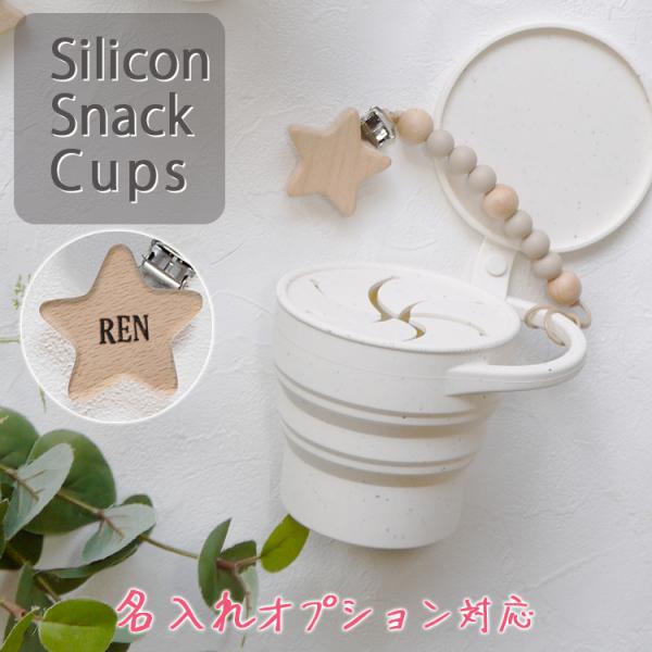 【選べるクリップセット】名入れギフト おやつカップ スナックカップ おやつケース シリコン お菓子ケース 持ち運び 男の子 女の子 おしゃれ シンプル 出産祝い