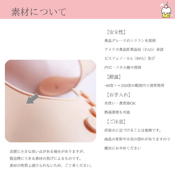 水洗いも熱湯消毒も可能なシリコン素材です。