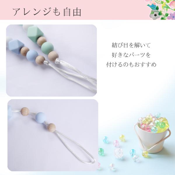 可愛いパステルカラーのシリコンビーズとウッドビーズの組み合わせは