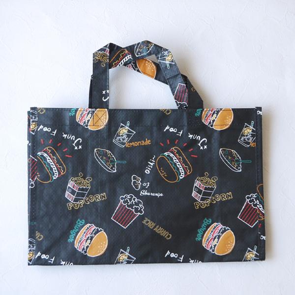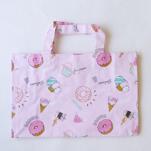 お道具バッグ マチ付き ビニールバッグ 通園 通学 バッグ プールバッグ スイーツ柄 ハンバーガー柄 男の子 女の子 レッスンバッグ 幼稚園 保育園