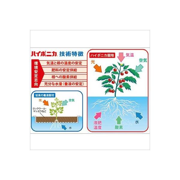 ハイポニカ液体肥料は、水耕栽培や土耕栽培などに使用でき、花・野菜・樹木など、あらゆる植物に対応しているオールマイティーな液体肥料です。