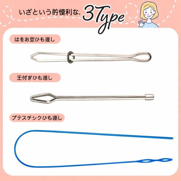 ・3本セット: 3本の異なるサイズの紐通しツールが含まれており、様々な太さの紐や糸に対応できます。
