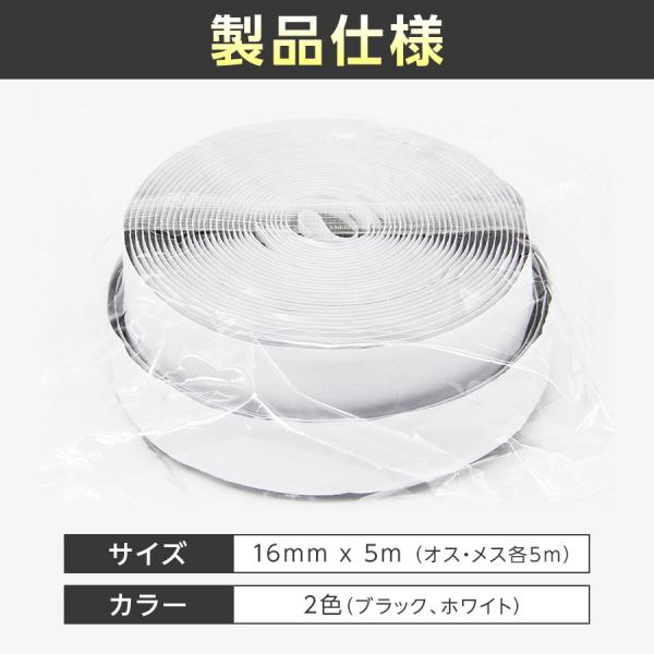 面ファスナー マジックテープ 粘着テープ 5m長さ x 1.6cm幅 オス メスセット 両面テープ付き 網戸 工作 ズレ防止