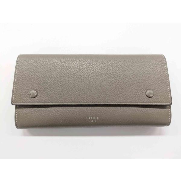 CELINE セリーヌ ラージフラップ マルチファンクション 二つ折り長財布 レザー モカ 中古 本物保証 ブランド