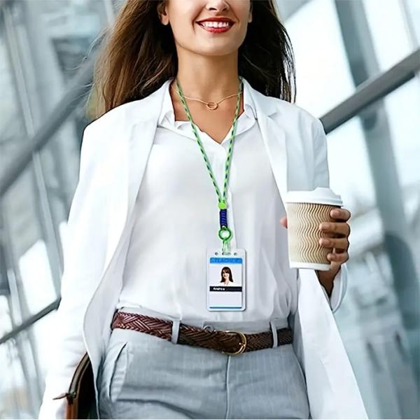 社員証 IDカードホルダー 縦型 クレジットカードケース ネックストラップ付 本革レザー 定期入れ ビジネス ケース 首掛け 二つ折り メンズ レディース カード