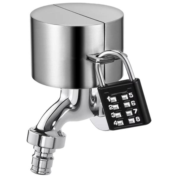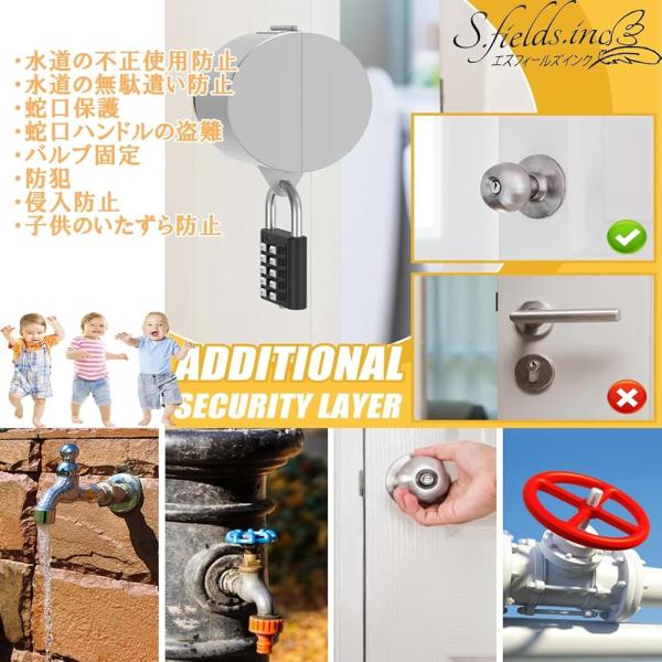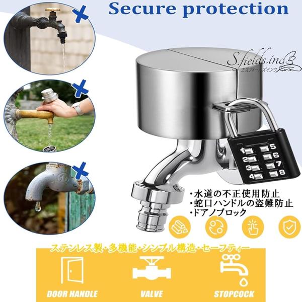 S.fields.inc正規直営店 蛇口ロック 南京錠付き 鍵 屋外 水道 蛇口ハンドルカバー バルブ ドアノブ ステンレス