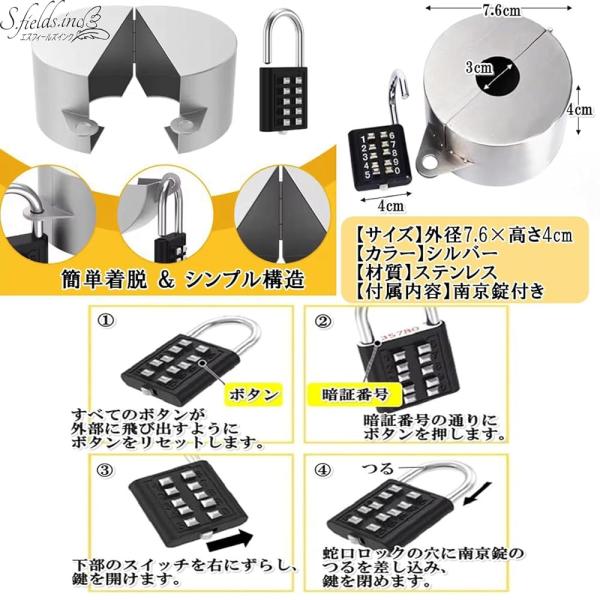 【サイズ】外径7.6×高さ4cm【カラー】シルバー【材質】ステンレス【付属内容】南京錠付き