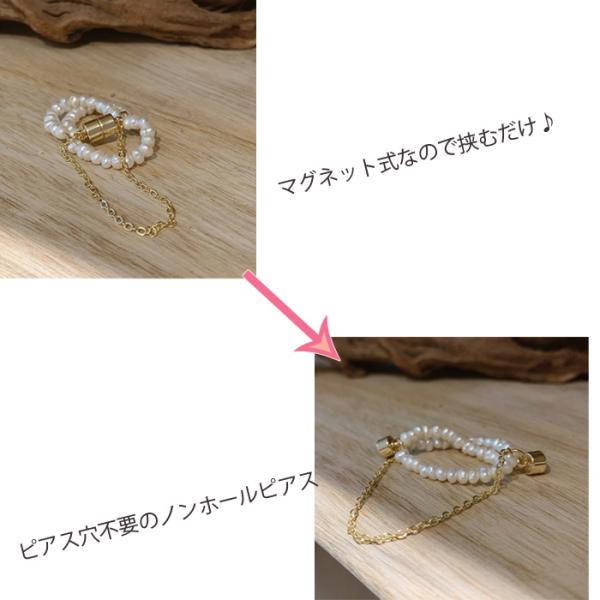 イヤリング ノンホールピアス レディース イヤーカフ マグネット 磁石 フェイクピアス チェーン フェイクパール 片耳
