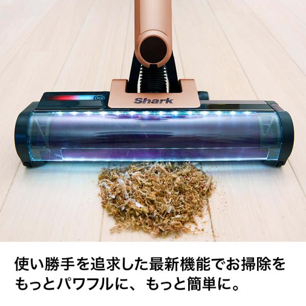 パワフル吸引に賢さと利便性をプラス! さらに進化したシャークのコードレススティッククリーナー。パイプが曲がって家具下のお掃除もラクラクなFLEX機能付モデル。