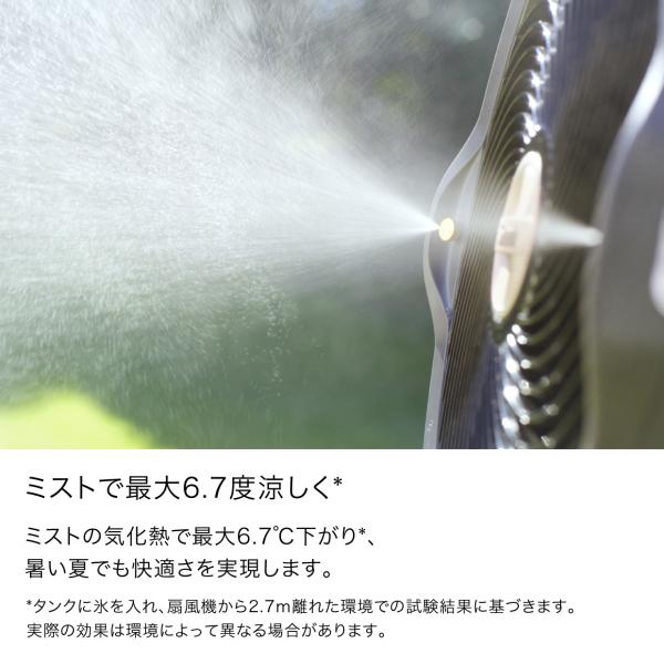 夏を、もっと自由に。ミストと風で夏をもっと涼しく快適に。コードを外して、屋外でも屋内でも使える。新しいコードレスファン。