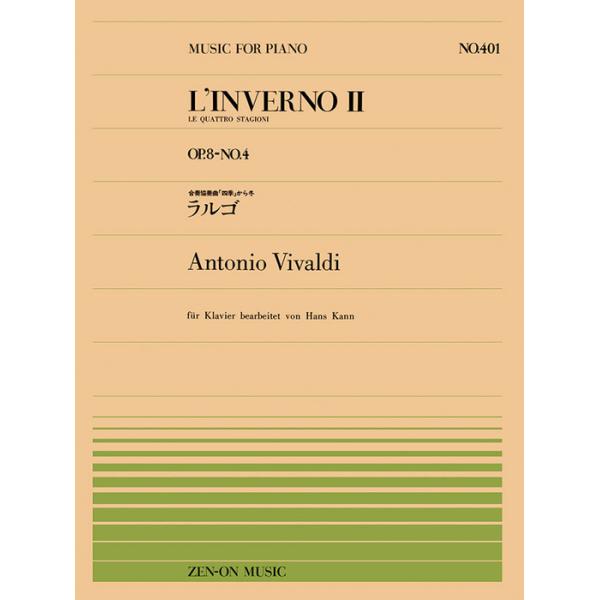 楽譜 全音ピアノピース401 ヴィヴァルディ/ラルゴ(Op.8-No.4)合奏協奏曲「四季」から冬(911401/難易度:B)