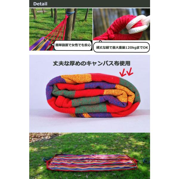 ハンモック 1人用 全2色 コットン 耐荷重120kg 収納袋付き アウトドア キャンプ バーベキュー ロープ付き 収納袋付き Mt.happy/マウントハッピー