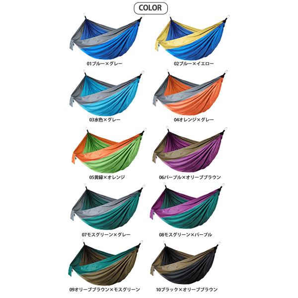 ハンモック 全10色 ナイロン 耐荷重200kg 軽量 コンパクト 簡単設置 カラビナ付き 紐付き アウトドア キャンプ BBQ バーベキュー Mt.happy/マウントハッピー