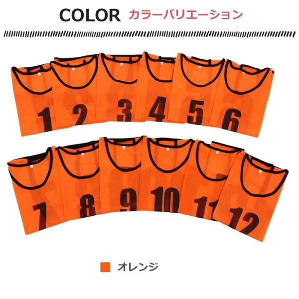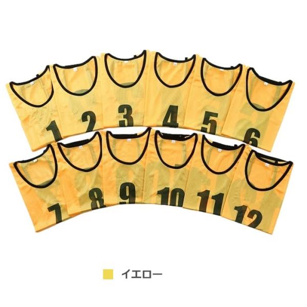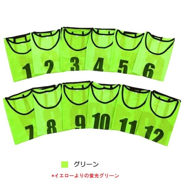 ビブス 12枚セット 1番-12番 全4色 ネオンカラー ユニフォーム フチあり メッシュ 軽量 ベスト ゼッケン サッカー Mt.happy/マウントハッピー