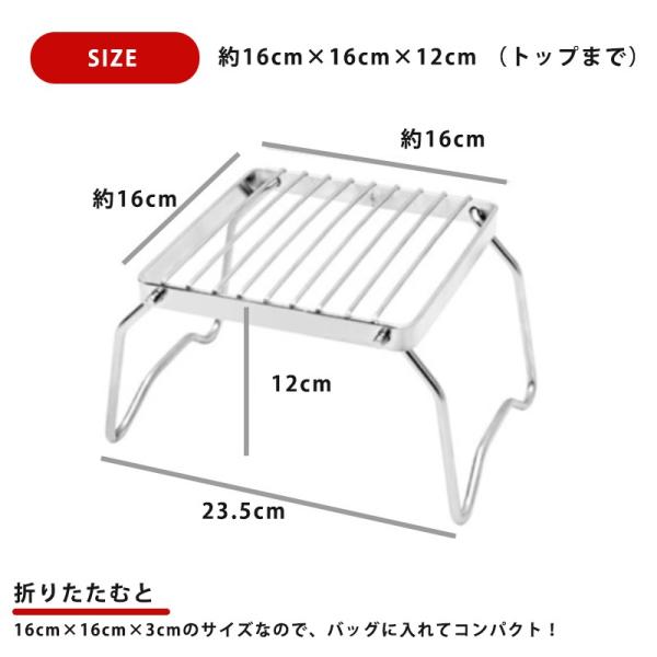 シングルバーナー スタンド ステンレス シルバー 丈夫 折りたたみ コンパクト 小さめ 軽量 頑丈 コンロ スタンド 五徳 Mt.happy/マウントハッピー