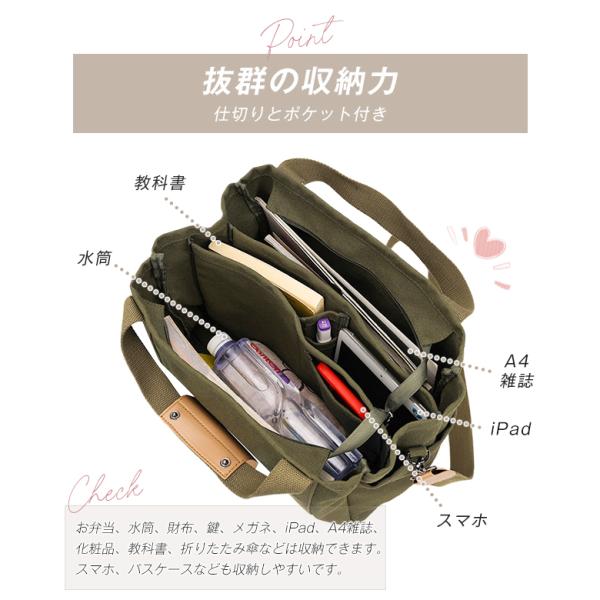 トートバッグ キャンバス レディース キャンバスバッグ 大容量 大きめ ファスナー付き 通勤 通学 仕切り 整理整頓 帆布 爆買