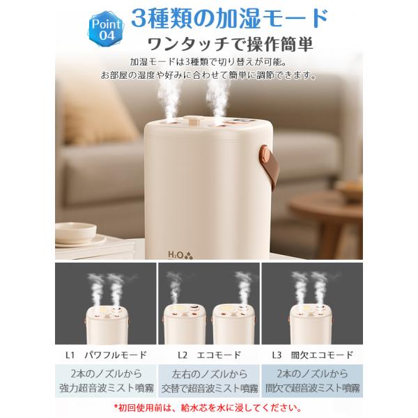 1.2L大容量超音波加湿器 8時間運転可能 便利な上部給水式