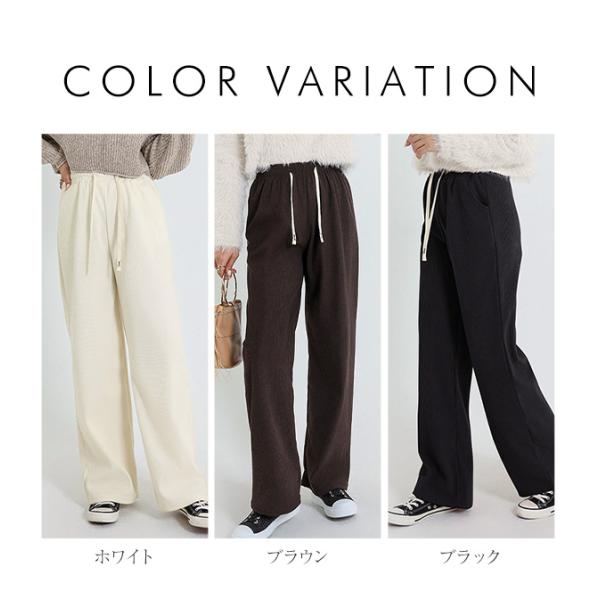 【人気商品!3%OFFクーポン!】裏起毛ワイドパンツ レディース リブ ボア 黒 白 ガウチョパンツ ボトムス ウエストゴム ロング丈 カジュアル 体型カバー 爆買