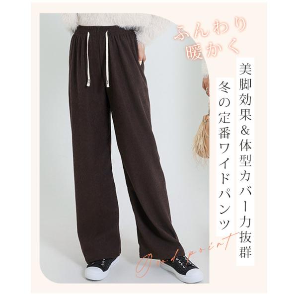 コーデュロイパンツ ワイドパンツ 裏ボア あったか 脚長見え