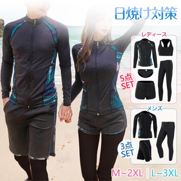 水着 レディース メンズ 5点/3点セット 体型カバー 日焼け対策 水陸両用 長袖 ラッシュガード タンキニ ショートパンツ レギンス セパレート 爆買