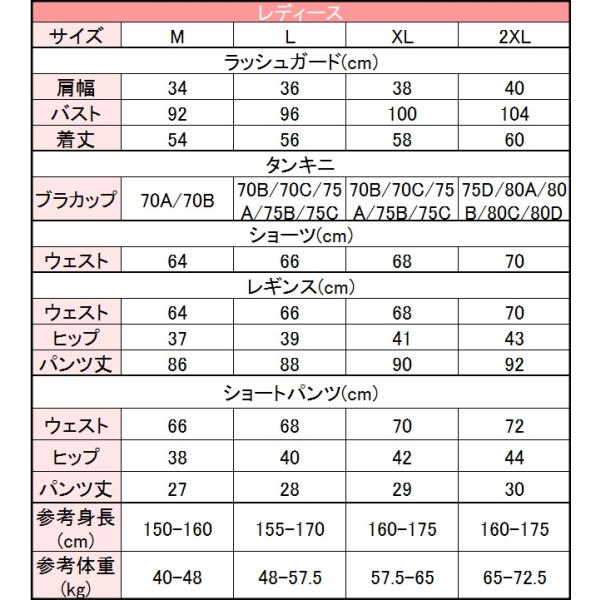 レディース5点セット:ラッシュガード+タンキニ+ショーツ+ショートパンツ+レギンス