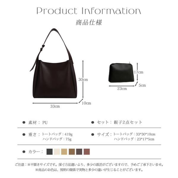 トートバッグ 2点セット 親子バッグ ショルダーバッグ レディース ハンドバッグ 鞄 PU 5段調整可能ベルト 肩掛け 持ち手 大容量 軽量 縦型 ビジネス 爆買