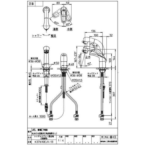 ★最短出荷★三栄水栓 K37610EJV-13 シングルスプレー混合栓(洗髪用)