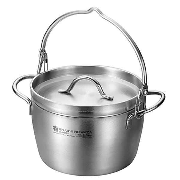 送料無料【日本製】燕三条 ダッチオーブン ステンレス 15cm(6インチ) ツル付 キャンプ ガスコンロ 直火 IH 100V 200V 焚火 よこやま EJSA-1500