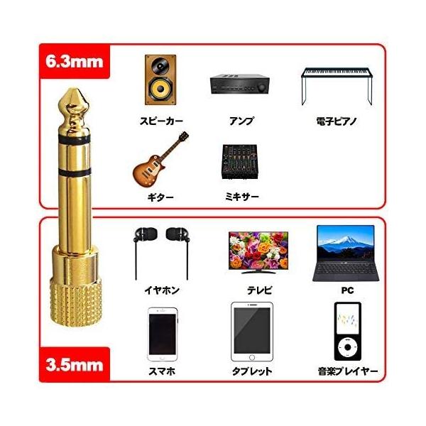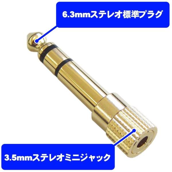 ステレオ 標準プラグ イヤホン ミニプラグ 金メッキ変換プラグ ステレオミニジャック 3.5mm → ヘッドフォン端子 TRS 6.3mm