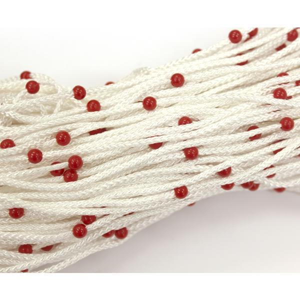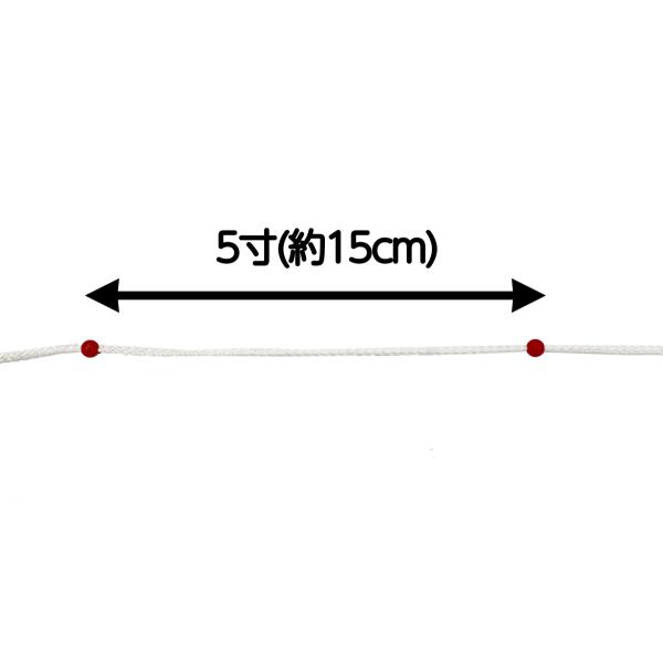 5寸(約15cm)間隔で目印玉が付いています。【商品説明】ロープ全長:約60m太さ:約φ3mm目印玉サイズ:約7mm素材:ロープ/ポリエチレン 玉/ポリエチレン製造国:中国※目印玉は固定されているため取り外しや位置変更はできません。