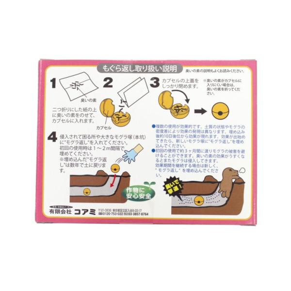 【特長】(1)モグラ・野ねずみが嫌がる臭い(2)設置が簡単(3)長期間被害を守る【セット内容】 臭いの素・1個カプセル・12個簡易手袋・1組差し入れ用紙・3枚【材質】臭いの素ボトル:PE臭いの素フタ:PPカプセル:PE簡易手袋:PE差しれ用紙:紙