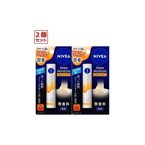 送料無料 2個セット ニベア ディープモイスチャーリップ メルティタイプ 無香料 2.2g ゆうパケット便