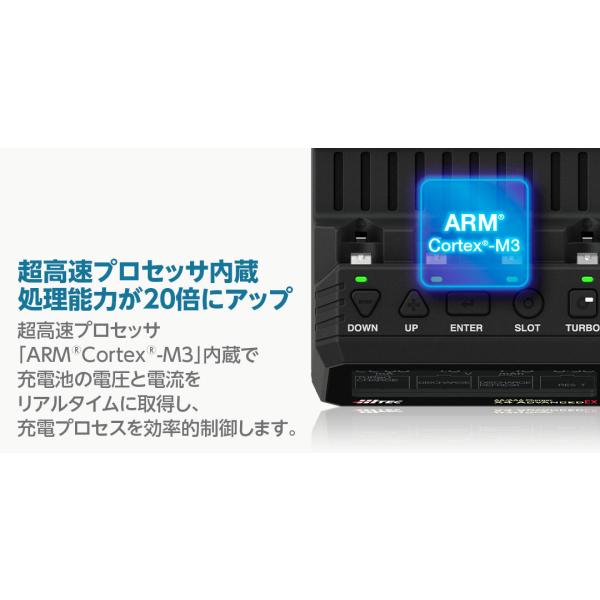 超高速プロセッサ「ARM〓Cortex〓-M3」内蔵で充電池の電圧と電流をリアルタイムに取得し、充電プロセスを効率的制御します。