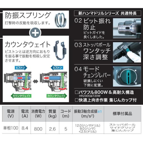 makita MAKITA HR2631F CB325 194074-2 建築 電動 工作 工具 用品 加工 機器 DIY tool ツール 切削 穴あけ 石工穴あけ ハツリ はつり 破つり 正逆転両用 HUMMER Drill ドリル ハンマドリル 軽量 コンパクト 槌 つち 2.7kg 800W SDSプラスシャンク 26mm AVT 低振動機構 3モード 集じん 集塵