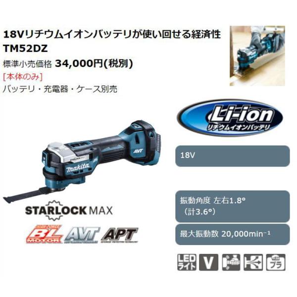 マキタ TM52DZ 充電式マルチツール 18V (本体のみ) (スターロック替刃のみ使用可、OIS規格使用不可) コードレス ◆