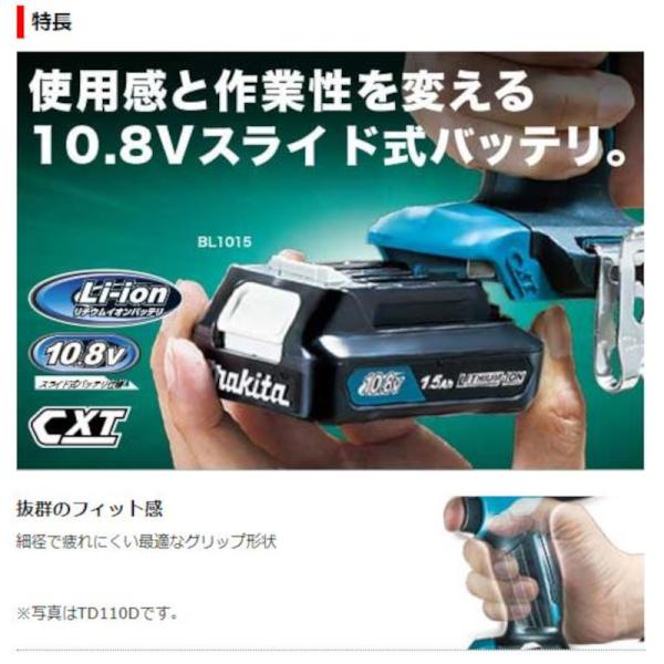 使用感と作業性を変える10.8Vスライド式バッテリー