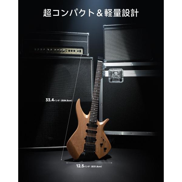 【ポータブルなヘッドレスデザイン】NHL-500は従来のギターヘッドがなく、コンパクトで軽量なので持ち運びが簡単。旅行、屋外でのセッション、スタジオリハーサルへの素早い移動に最適です。【安定したチューニング、メンテナンスの軽減】ロック式ブリッジと精密チューニング システムを備えたこのギターは、長時間の演奏や頻繁な輸送中でもチューニングが維持されるため、頻繁に再チューニングする必要がありません。【快適でバランスの取れたプレイ体験】人間工学に基づいたボディと均一な重量配分により、ヘッド落ちが解消され、自宅、ステージ、スタジオでの長時間の演奏でも快適性と安定性が得られます。また24フレットにより幅広いプレイアビリティを備えます。【モダンでミニマリストな美学】未来的なヘッドレスシルエットのNHL-500は、モダンなスタイルと個性を体現しており、パフォーマンスと個性の両方を求めるプレーヤーに最適です。【外出先で演奏するミュージシャンのためのスマートギグバッグ】軽量で衝撃を吸収するギグバッグが付属しており、リュックのようにコンパクトに背負うことが可能。
