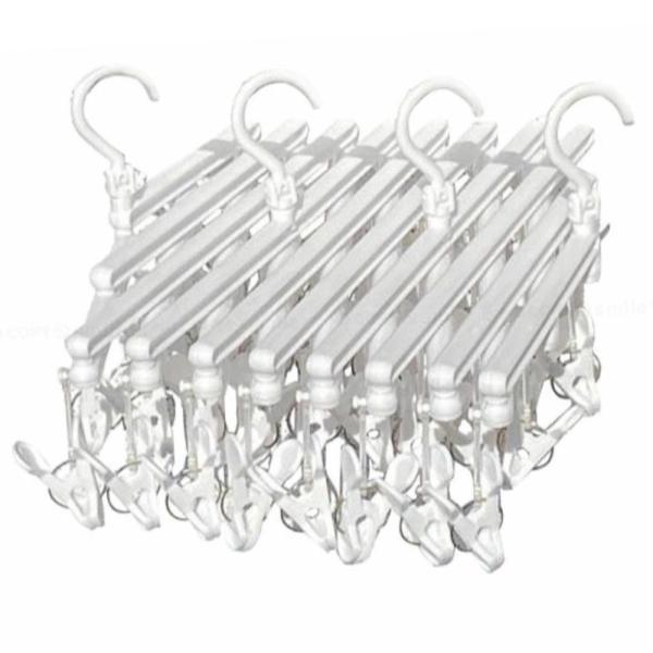 洗濯ハンガー ジグザグ伸縮ハンガー44ピンチ ピンチハンガー UVカット剤入りで長持ち ハンガー 外干し 爆買 (ホワイト)