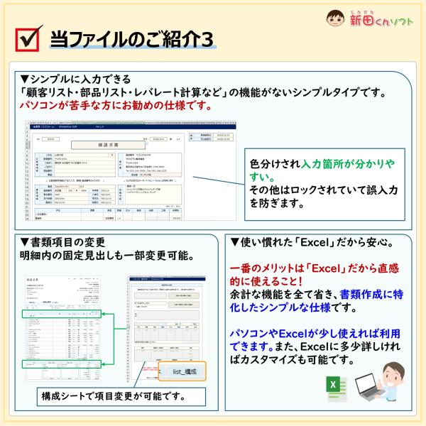 パソコン(Excel)で「簡単&綺麗に」書類作成ができます。
