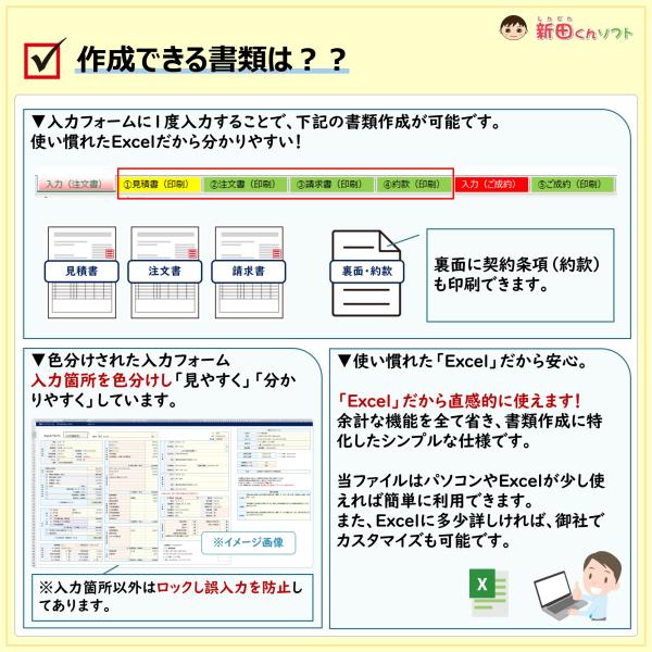 手書きが苦手な方も、パソコン(Excel)で「簡単&綺麗に」書類作成ができます。