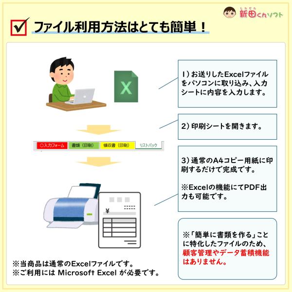 手書きが苦手な方も、パソコン(Excel)で「簡単&綺麗に」書類作成ができます。