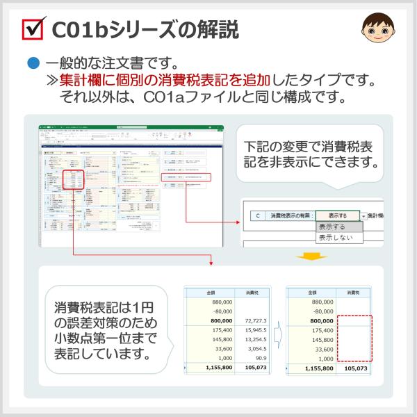 C01‐bシリーズ 自動車注文書ファイル(消費税欄タイプ)車両売買 Excel 新田くんソフト