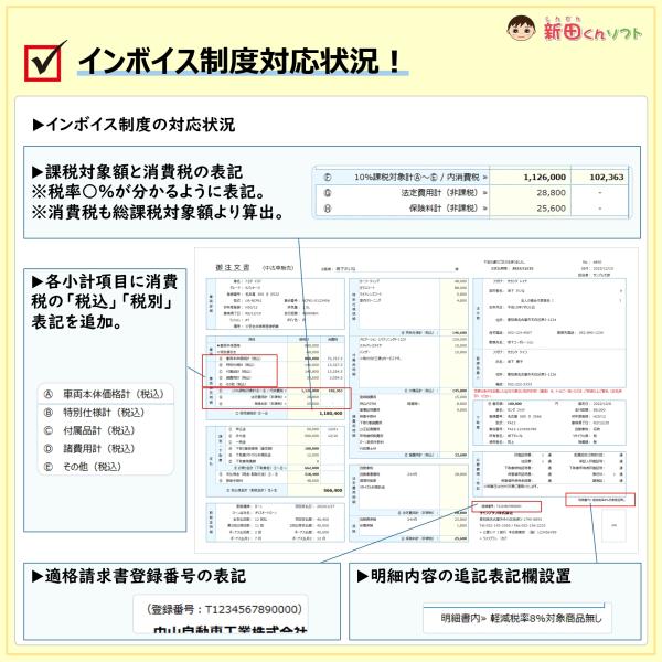 C01-a2 自動車注文書作成ファイル(注文書・見積書・請求書・契約条項) エクセル 販売書類 ご成約 インボイス 新田くんソフト