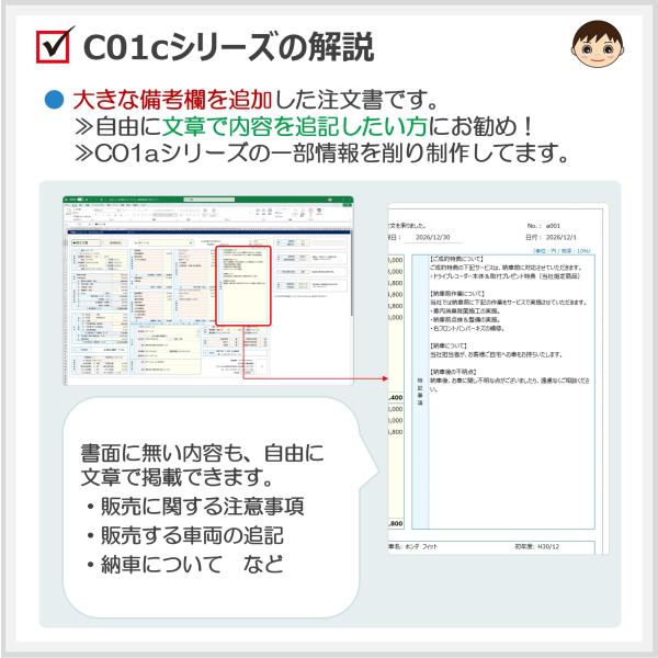 C01‐cシリーズ 自動車注文書ファイル(備考欄タイプ)車両売買 Excel 新田くんソフト