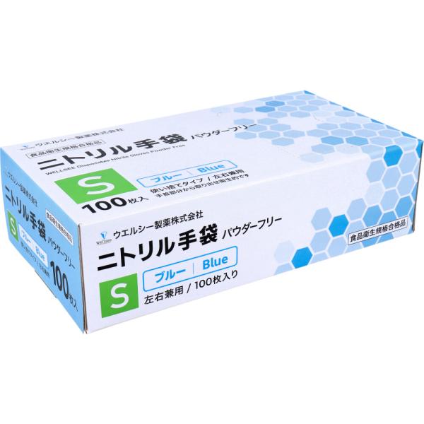業務用 ウエルシーニトリルグローブ パウダーフリー ブルー 左右兼用 S 100枚入