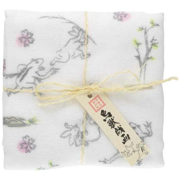 丸全(Maruzen) 晒8重ガーゼハンカチ 鳥獣戯画 28×28cm