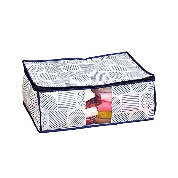 アイメディア(Aimedia) 衣類収納袋 収納ケース 衣類用 収納ボックス 北欧柄 不織布 防塵 透明窓付き (約)35×50×20cm