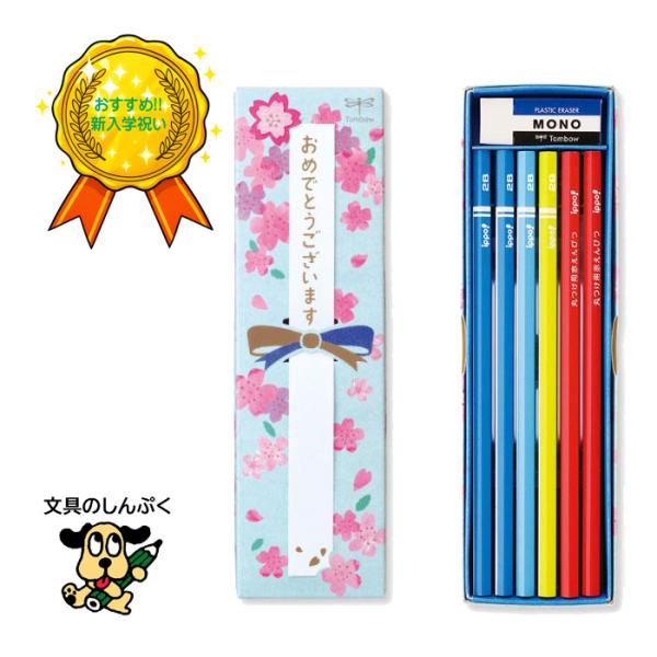 トンボ鉛筆 ippo! お祝い鉛筆 A柄 2B MP-KM02-2B 入学祝い ギフトセット かた鉛筆 2B・10本 丸つけ用 赤鉛筆 2本、MONO 消しゴム 1コ
